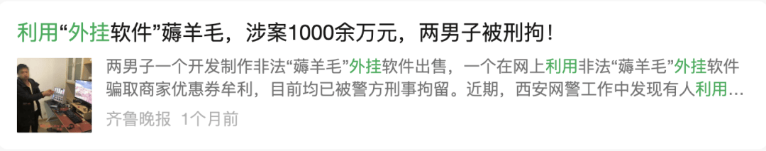 当初已经有多起运用外挂做弊软件正当赚取高额收益而被法院起诉判刑的案例 。因此在此也揭示广漠司机徒弟 ,切不分心存侥幸去置办概况运用外挂软件 ,黑产团伙之以是可能不断存在 ,中间仍是有一部份司机想要经由运用外挂软件走捷径而催生的市场需要。