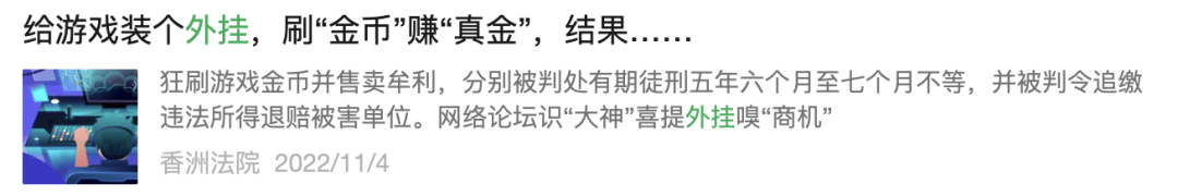 尽管外挂黑产团后高度神秘 。可是,并不代表这些黑产团伙的违法行动就能规避法律制裁,尽管运用外挂简直可能在短期内取患上高流水接到大单,可是一旦被平台识别轻则被封号处分,重则可能还面临刑事处分蒙受牢狱之灾。辅助