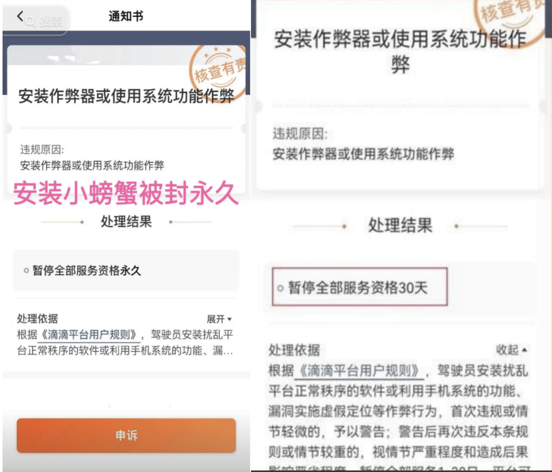 从短视频平台上部份运用了外挂软件被封号的司机晒出的截图可能看到,良多司机被封号了30天,也有部份司机被平台永世封禁 。从这一点可能看出滴滴对于运用外挂做弊软件的网站司机实施0容忍态度 。